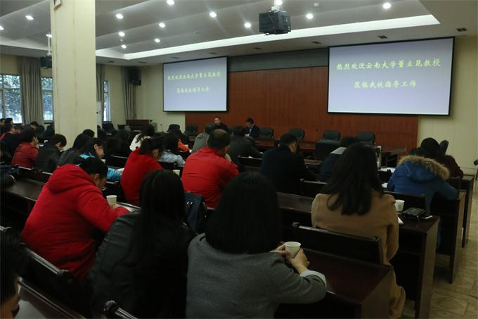 4月12日上午,云南大学教学评估办公室主任董立昆来我校指导审核评估工作,长沙学院党委委员、副校长张世英主持会议,各学院(部)教学副院长、教研室主任、实验室主任、学校评估办和教务处全体老师参加了会议。