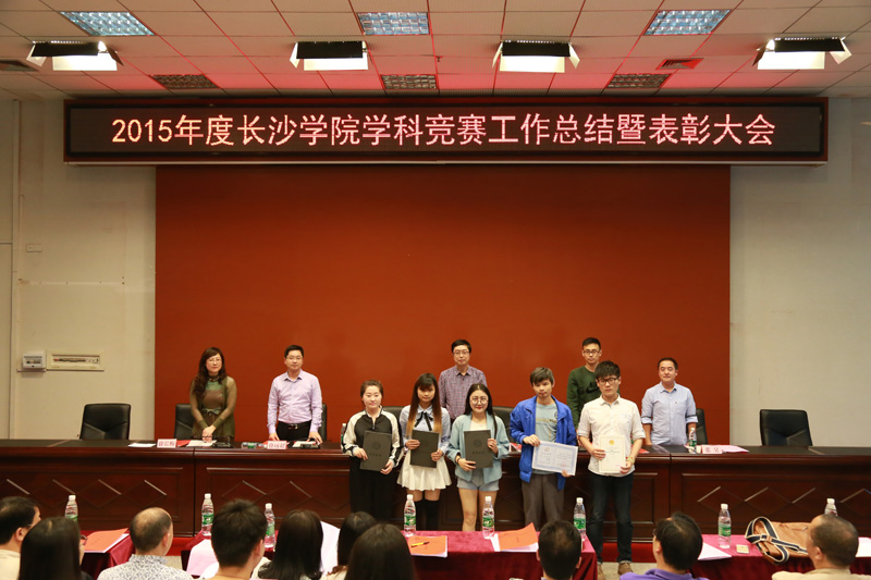 教务处处长杨建宏宣读了长沙学院2015年学科竞赛表彰奖励决定,向获奖的优秀团体及先进个人表示祝贺,并鼓励师生们再接再厉,再创佳绩。与会领导为获奖团队及个人颁发荣誉证书并合影留念。