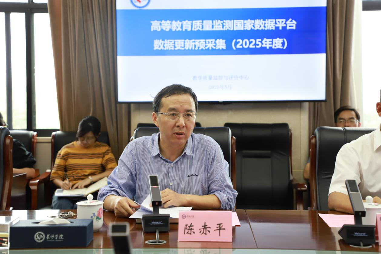 5月14日下午,2025年本科教学基本状态数据预采集工作动员部署会议在长盛楼4001会议室召开。校长陈赤平、副校长张世英出席会议,相关职能部门主要负责人,各二级学院院长,数据采集员,教务处、教学质量监控与评价中心科级及以上干部参加会议。会议由校长陈赤平主持。