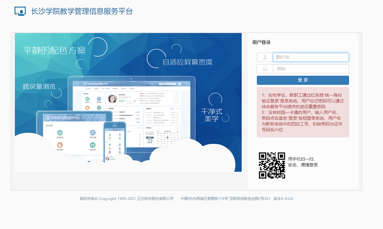 一、 用电脑或者手机打开教务管理系统入口:http://jwxt.jwc.ccsu.cn/jwglxt/,进入如下图1(电脑)的界面。