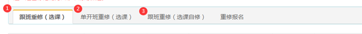 3.重修分为三种形式,分别为:跟班重修(选课)、单开班重修(选课)和跟班重修(选课自修)。